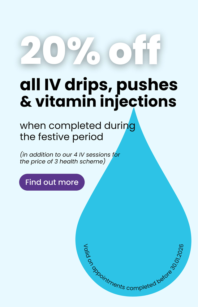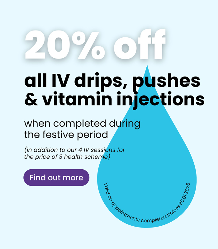 All IV drip patients receive an in-depth consultation with our IV nurse included in the price. This is a prime opportunity to discuss symptoms, medical history and other influential factors. Where needed, we can tailor your IV drip to address specific requirements. Many of our patients support the NAD+ drip with a Myers cocktail at the same appointment. Speak to our nurses to find out how this could benefit you.